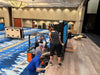 7' Dims 94" Long,  55" Wide, 32" High, 725lb assembled